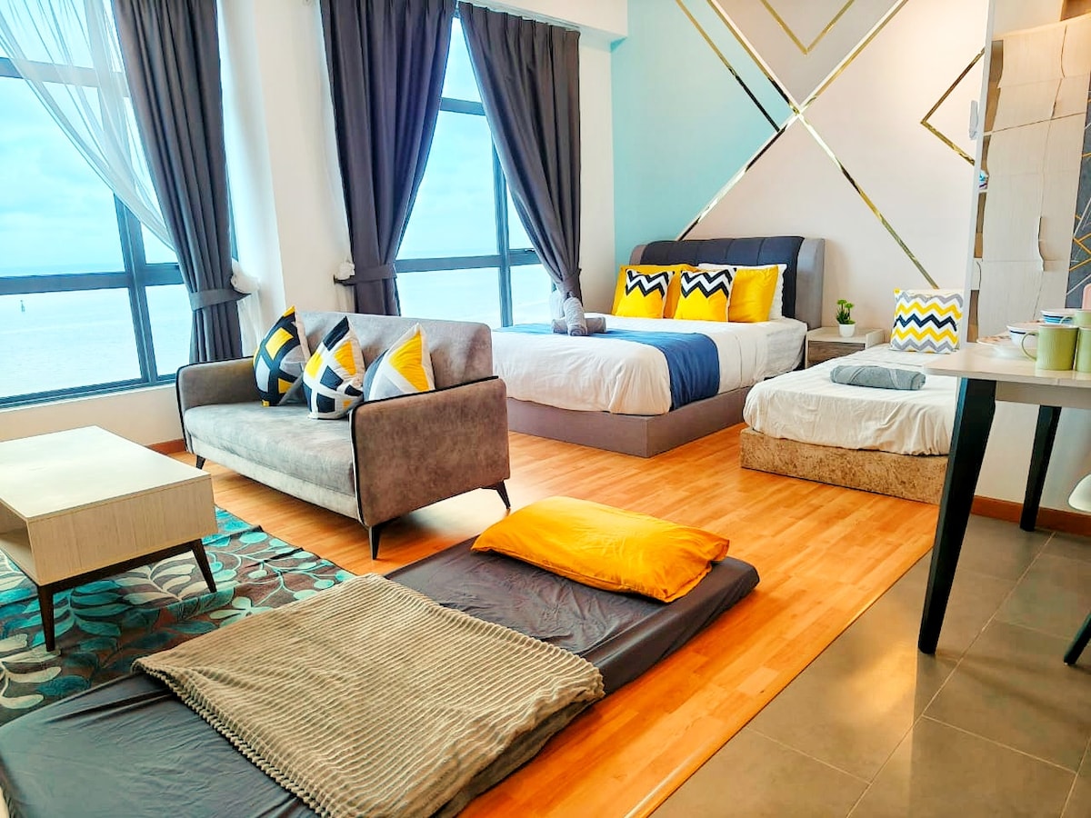 Hãy thư giãn tại nơi nghỉ ngơi độc đáo và yên tĩnh này đối diện với Biển Đông. Nơi cư trú bên bờ biển tại Tanjung Lumpur chỉ cách Trung tâm thành phố Kuantan 5 phút lái xe. Tận hưởng tầm nhìn trực tiếp ánh sáng ban đêm của Thành phố Kuantan từ phòng khách. Lối vào cho khách: chỗ đỗ xe được chỉ định MIỄN PHÍ Tầng 5 (có thẻ vào) Phòng xông hơi Hồ bơi vô cực Sân chơi nước trẻ em Sân chơi trẻ em Phòng tập thể dục hướng biển Gardens BBQ pit Restaurant & Cafe @ Ground Floor (Chỗ ngồi trong nhà và ngoài trời) Quán cà phê & quán bar trên tầng thượng @ 6th Level, Block B