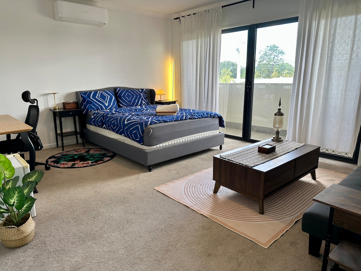Hotel Style Studio apartment in South Brisbane, close to Gabba and CBD. Just next to Mater Medical Precinct. 5 minutes to the Gabba, River Stage (over Goodwill Bridge) and Exhibition Centre, 2 minutes to Mater Hospitals, Princess Theatre, 5 minutes to Southbank and 10 minutes to CBD (all walking) Pool and undercover parking. Your own key and separate access. Kitchenette (small fridge, microwave, coffee), air-con, pet friendly. Desk and Wi-Fi, ensuite, own balcony, queen bed, key lock safe.