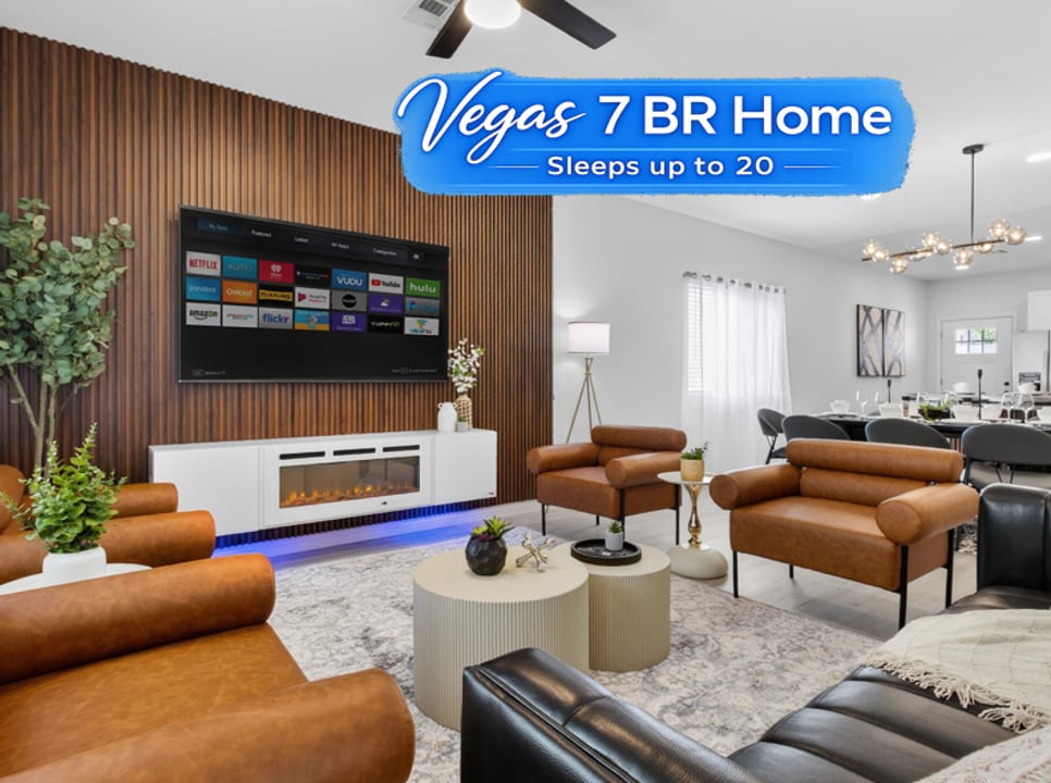Nhà 4 phòng ngủ sạch sẽ, rộng rãi và riêng tư, được thiết kế để thư giãn sau những ngày bận rộn ở Vegas hoặc sau một chuyến đi dài. Cách bài trí mở, khu vực ngồi thoải mái và nhiệt độ mát mẻ nhất trong toàn bộ ngôi nhà giúp các nhóm dễ dàng ở cùng nhau mà không cảm thấy chật chội. • 4 phòng ngủ (giường queen) • 2 phòng tắm • 2 sofa giường cho khách bổ sung • Bếp đầy đủ tiện nghi • loa bluetooth • Wifi nhanh – 602 Mbps + TV thông minh • Điều hòa không khí hoàn toàn mới + bộ phận phụ trợ + quạt trần trong mỗi phòng