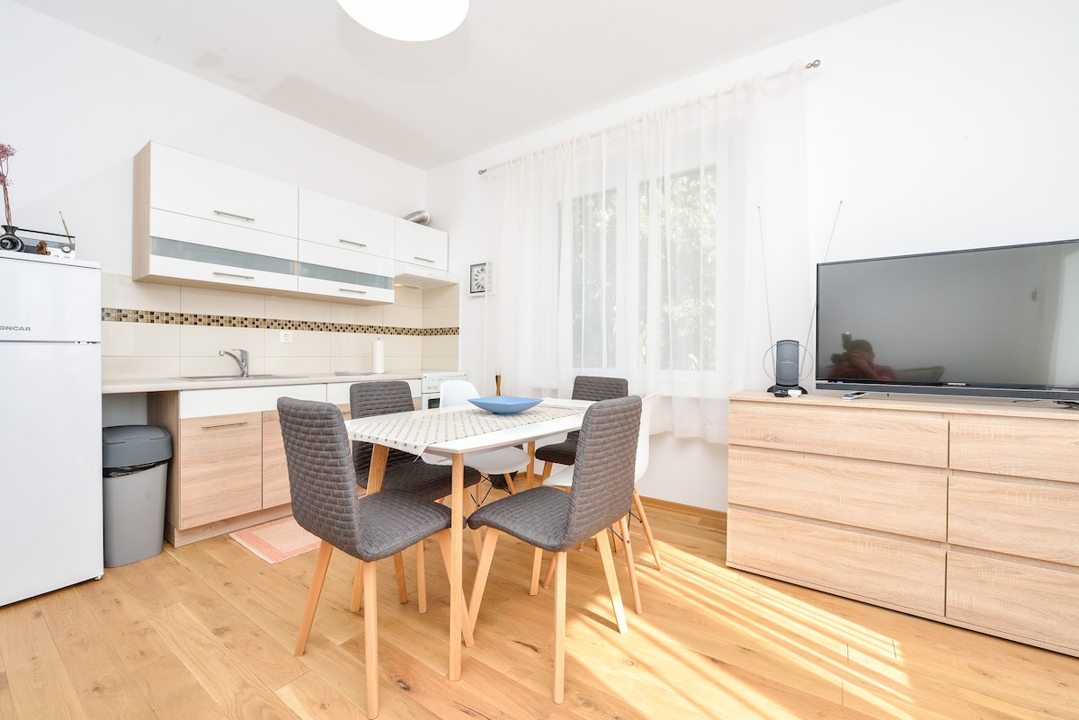 THÀNH PHỐ CỔ cách 5 phút đi bộ! đi DẠO BIỂN 1 phút đi bộ! BÃI ĐỖ XE miễn phí! khu phố thân thiện với GIA ĐÌNH,an toàn! THƯ GIÃN 2 phòng ngủ+ khu vực sinh hoạt với giường sofa thoải mái, nhà bếp được trang bị tốt, BAN CÔNG đầy nắng. RẤT NHIỀU ÁNH SÁNG TỰ NHIÊN. Phòng tắm/nhà vệ sinh riêng biệt. WIFI tốt vàmiễn phí. TRONG bán kính 100m :siêu thị,tiệm bánh,ngân hàng,hiệu thuốc,quán ăn,điểm dừng taxi&bus ..và công viên xinh đẹp Vruljica cho TRẺ EM(cối xay nước,vịt,đu quay, khu vực cát). SÂN THỂ THAO hiện đại Višnjik, 15 phút đi bộ. BÃI BIỂN 25 phút đi bộ! HOAN NGHÊNH :))