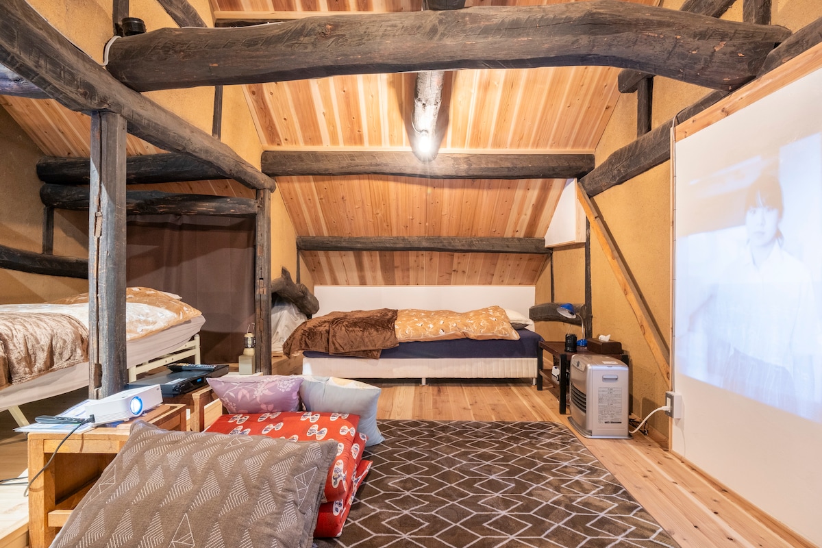 Tận hưởng thời gian thư giãn trong một căn phòng rộng rãi và yên tĩnh.Nhà trọ nằm ở làng miền núi và hiếm khi gặp gỡ mọi người, vì vậy nó có một bầu không khí hẻo lánh.Nội thất đã được cải tạo và căn gác có các bức tường đất kiểu cũ và dầm dày. Vui lòng đến nhà trọ bằng xe hơi.Lốp xe mùa đông được yêu cầu vào mùa đông.Có chỗ đỗ xe trong khuôn viên cho 2-3 xe.Lối vào khuôn viên hơi hẹp và bất tiện.Nó có thể gây bất tiện cho những người không quen lái xe.Chúng tôi sẽ chỉ đường cho bạn nếu cần. Dịch vụ cho thuê thiết bị nướng sẽ tiếp tục vào tháng 3.Giá 2.000 yên cho tối đa 4 người và 2.500 yên cho 5 người trở lên. Hãy thoải mái sử dụng đồ dùng nhà bếp.Vui lòng sử dụng gia vị, 2 lít nước uống và cà phê hòa tan.Siêu thị cách đó 15 phút lái xe và cửa hàng tiện lợi 24 giờ mất khoảng 10 phút, vì vậy vui lòng mua các nguyên liệu và đồ uống cần thiết trước khi đến. Không có TV, nhưng có một máy chiếu trên gác xép. Gần đó có suối nước nóng sử dụng ban ngày (Hoshina Onsen, Makiba-no-Yu, suối nước nóng và vườn). Không có máy giặt, vì vậy vui lòng sử dụng máy giặt bằng đồng xu (15 phút bằng xe hơi) để sử dụng máy giặt bằng đồng xu (15 phút bằng xe hơi) cho thời gian lưu trú dài hơn.
