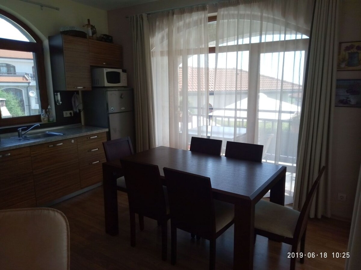 Căn hộ 2 phòng ngủ ấm cúng này nằm ở Saint Vlas, một trong những khu nghỉ dưỡng nổi tiếng nhất Biển Đen ở Bulgaria. Khu phức hợp được gọi là "Royal Bay Residence" và nó là một khu phức hợp kiểu khép kín. Chỗ ở yên bình và yên tĩnh, nằm trong khu vực đẹp, hàng đầu bên cạnh bãi biển. Royal Bay Residence nằm trên bờ biển Sveti Vlas, và nó có một khu vườn tráng lệ và một hồ bơi nhìn ra biển. Hãy thoải mái ở trong căn hộ hai phòng ngủ (ba phòng) ấm cúng của tôi, hoàn hảo cho các gia đình.