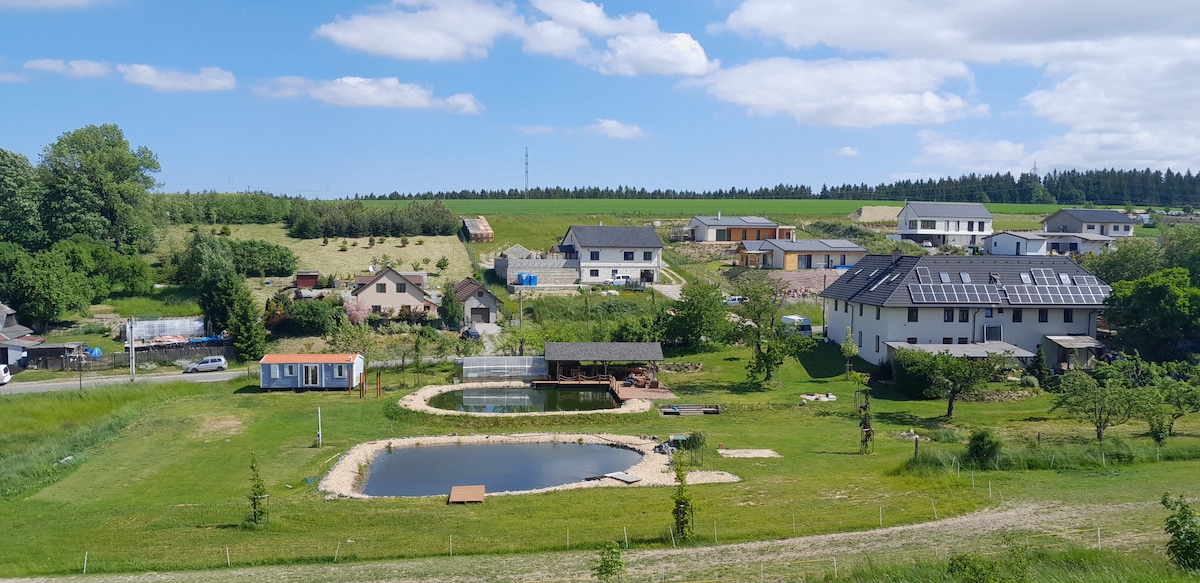 Chúng tôi đã xây dựng Tiny House Pod Ořechy của mình để duy trì mức độ riêng tư và yên bình tối đa. Nó nằm cạnh một chuồng cừu và nổi bật với tầm nhìn ngoạn mục ra rừng và đồng cỏ. Nhà nhỏ, nhưng chu đáo đến từng chi tiết. Nó nằm trên một khu nhà có hàng rào để thú cưng bốn chân của bạn có thể đến cùng bạn. Tại chỗ ở, bạn cũng sẽ tìm thấy một phòng xông hơi đốt củi riêng của Phần Lan với tầm nhìn lãng mạn mà bạn có thể sử dụng mà không bị hạn chế. Bên trong, bạn sẽ tìm thấy một chiếc giường thoải mái, một phòng tắm đầy đủ và một bếp nhỏ.