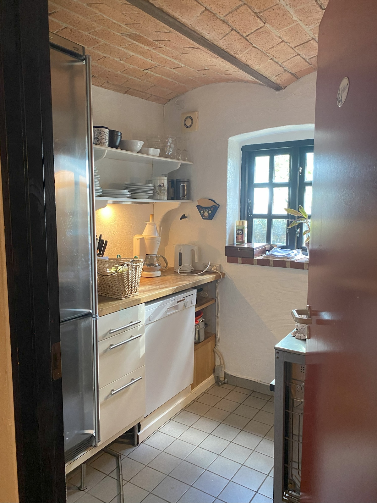 We offer here a cozy double room with curved ceilings in a style where we cherish the old virtues. The rooms are furnished in an extension to the original Lergravgaard from 1750. Bed linen is included. However, breakfast is not included in the price, but there is access to full kitchen facilities. Here is not far to shopping, bus, freeway, Aarhus and Djursland attractions.