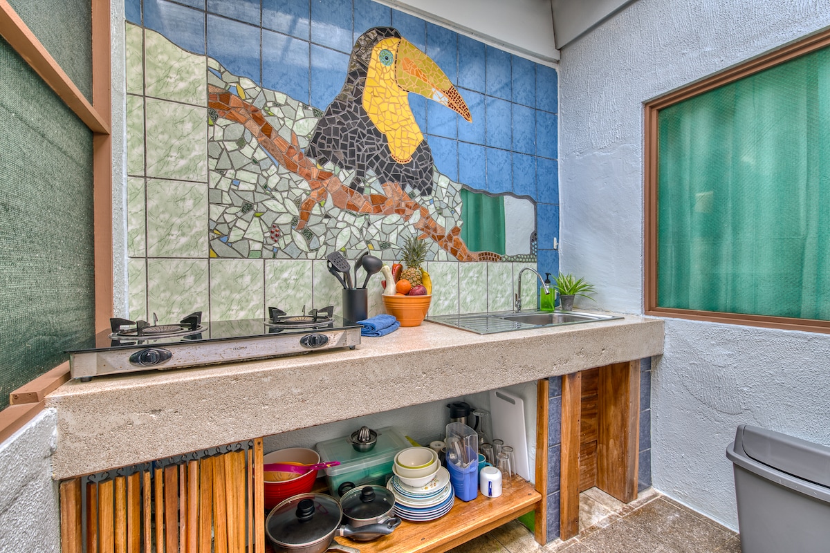 Đắm mình trong thiên nhiên hoang sơ, căn hộ một phòng ngủ ấm cúng này có bếp đầy đủ tiện nghi, khu vực ăn uống, tiệc nướng và phòng có phòng tắm riêng. Chỉ cách Playa Negra xinh đẹp một quãng đi bộ ngắn và cách Puerto Viejo 10 phút đi bộ, đây là nơi nghỉ dưỡng hoàn hảo cho những ai đang tìm kiếm sự thư giãn và phiêu lưu.