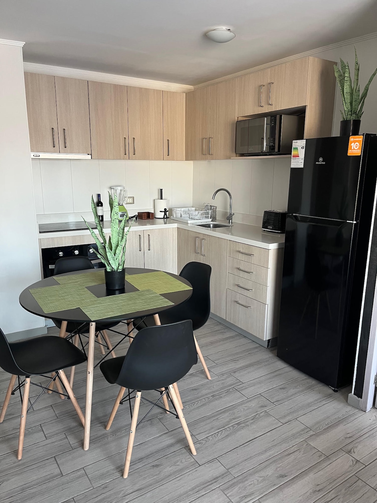 Depto nuevo en Brisa del Sol, a 10 min del aeropuerto de Concepcion. Ideal para pasear y descansar. Cuenta con dormitorio suite con walk in closet, Smart TV 43" 4K, baño con shower y defroster. Cocina completamente equipada. Living equipado con sofá cama. Wifi de alta velocidad. Cafetera Nespresso con cápsulas. Estacionamiento Privado. Balcón con terraza amplia. Ubicación estratégica: inmerso en la naturaleza y muy tranquilo, cercano a casino, mall el trébol y múltiples espacios comerciales.