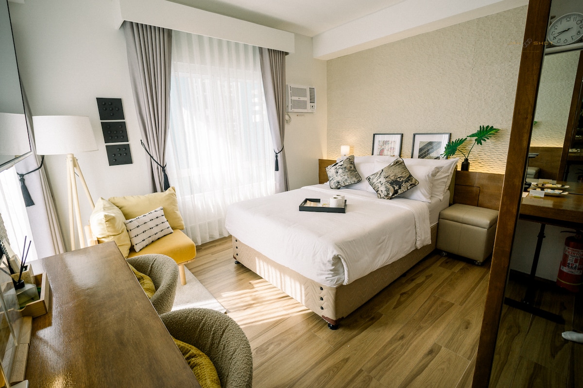 Một căn hộ một phòng ngủ ấm cúng ngay trung tâm Thành phố. Dễ dàng di chuyển để kết nối bạn với các địa điểm gần đó. Chỗ ở sẽ giúp bạn thoải mái với một chiếc giường cỡ king, rèm mờ, giường sofa bổ sung và một bộ sala rộng trong phòng khách. Nó được trang bị các tiện nghi thiết yếu trong nhà bếp nếu khách có kế hoạch nấu ăn. Không có thời gian để lãng phí bên trong căn hộ vì chúng tôi cung cấp cho bạn truy cập internet miễn phí, các kênh giải trí truyền hình bao gồm Netflix. Khách cũng có thể sử dụng hồ bơi của Căn hộ.