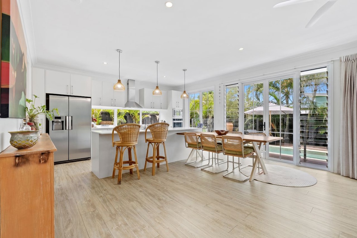 Chào mừng bạn đến với 'Nhà bãi biển Surfside' - Một ngôi nhà bên bờ biển có không gian mở thân thiện với gia đình, nơi thời gian dành cho gia đình gặp gỡ thư giãn! Hoàn hảo cho các cặp đôi hoặc gia đình nhỏ. Hoàn chỉnh với nhà bếp và phòng đựng thức ăn được trang bị đầy đủ tiện nghi, khu vực sinh hoạt / ăn uống lớn và khu vực ngoài trời riêng bao gồm hồ bơi & BBQ - đây thực sự là nơi nghỉ ngơi lý tưởng, thư giãn, giải trí và tận hưởng những buổi chiều dài lười biếng, hoàn chỉnh với những cơn gió biển tuyệt đẹp. Chỉ cách bãi biển 100 m. Khoảng cách ngắn từ các địa điểm tổ chức lễ hội nổi tiếng và chỉ 25 phút đến Vịnh Byron.