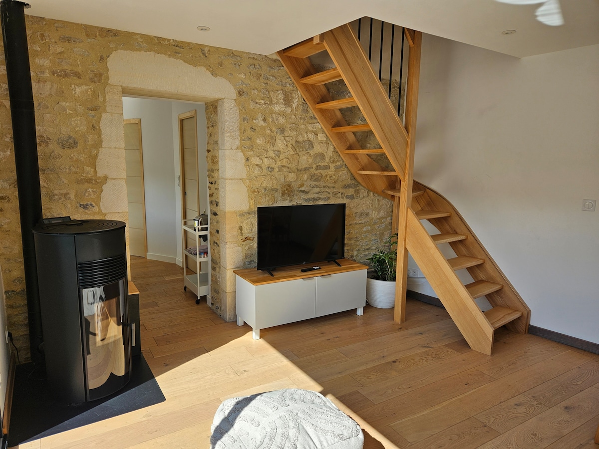 NHÀ NGHỈ THÔN DÃ ĐẶC BIỆT TẠI NƠI DIỄN RA NƠI DIỄN RA ẩm thực DU CHATEAU, có NIÊN ĐẠI TỪ THẾ KỶ 16 (200 m2) ngủ tối đa 6 khách: - 1 phòng ngủ lớn trên lầu (1 giường đôi + 1 giường đơn) - 1 phòng ngủ lớn thứ hai trên sàn nhà (1 giường đôi) - 1 giường phụ khi hạ cánh trên lầu - 1 phòng tắm (có bồn tắm) trên lầu - 2 nhà vệ sinh (ở tầng trệt và trên sàn nhà) - 1 phòng khách lớn - Lò sưởi thời kỳ lớn (tùy thuộc) cũng như bếp được trang bị mở cho phòng ăn. - 1 yên ngựa