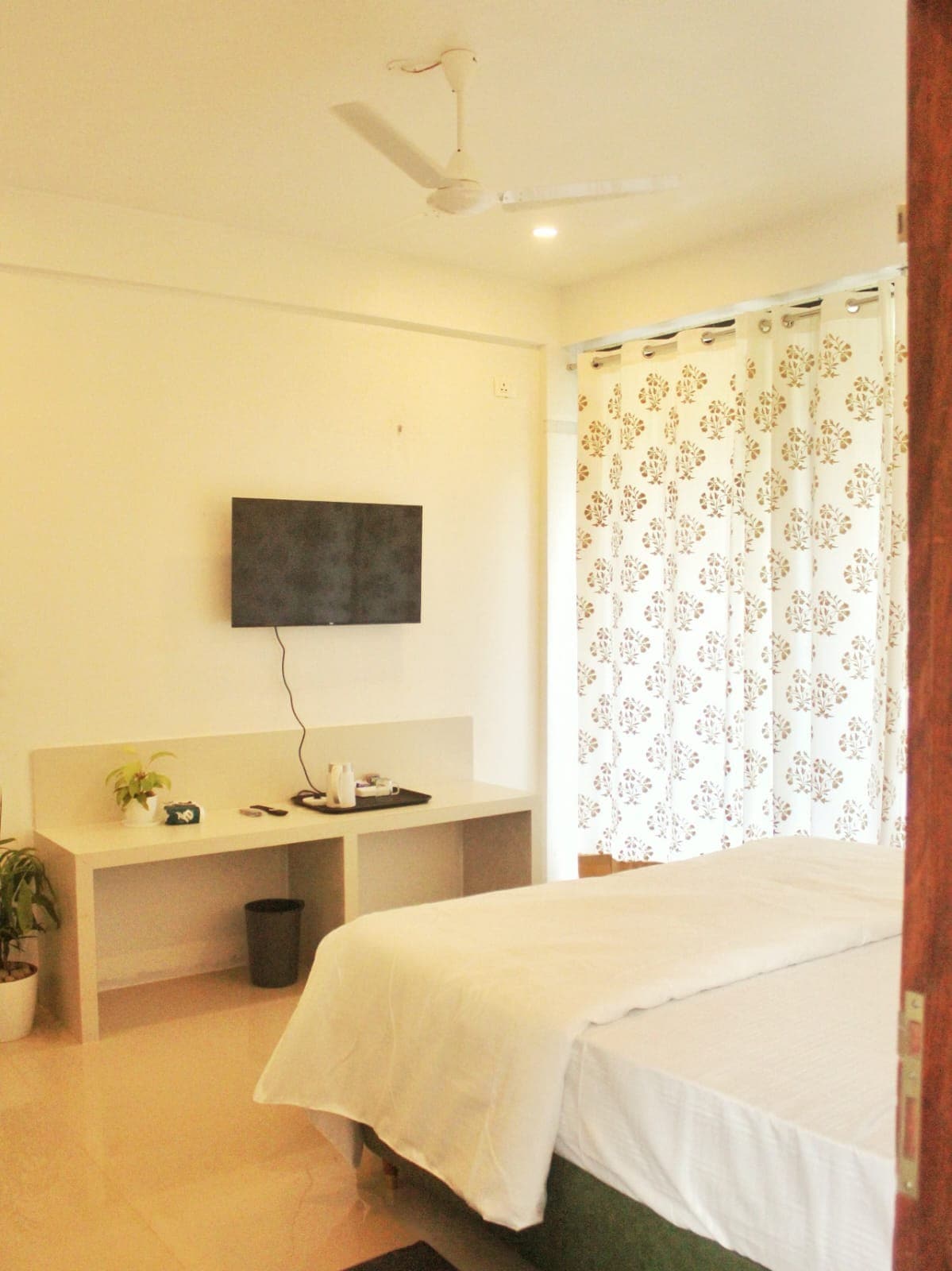 This is a compact, air-conditioned room located on the first floor. Perfect for solo travelers or couples, the room includes high-speed Wi-Fi and a smart TV for your entertainment. The room also features a private balcony overlooking a lively market street, offering a pleasant spot to relax and enjoy the view. Please note: Car parking and lift are not available. Nearby Attractions: Rock Beach – 5 mins drive / 15 mins walk White Town – 10 mins walk Sri Aurobindo Ashram – 10 mins walk