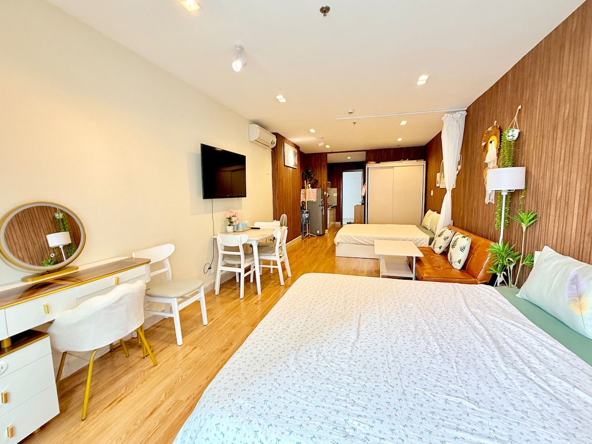 This is a cozy, modern studio with a garden view, just 05 minutes from Tan Son Nhat Airport, located in a quiet, secure residential area. Fully equipped with air conditioning, a kitchenette, a workspace, and a large smart TV, it offers a peaceful stay. Enjoy flexible check-in/check-out with a private automated door system. Just 20 minutes by taxi to Nguyễn Huệ Walking Street and near local restaurants and Hoang Van Thu Park for morning exercise.