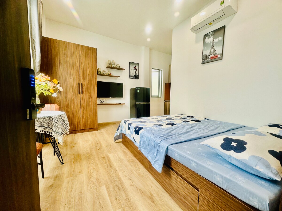 Ivy Room ~ Peaceful Stay in the Heart of Saigon ~ Surrounded by greenery and natural light from large windows, ideal for both short & long-term stays. - What you'll love: •Big window •Quiet, charming alley - relaxing vibe •12 minutes by car from TSN Airport/D1 •Spacious shared kitchen •Washing & drying machines •Motorbike rental •Self check-in •Surrounded by food! - Amenities include: •Elevator •Rooftop terrace •Projector for movie nights •Essentials: hair dryer, toiletries, towels, dental kit