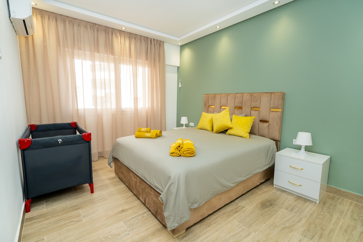 This charming apartment is ideal for families seeking a serene and inviting space. beautifully decorated and designed to provide the utmost comfort and convenience during your stay. The apartment is located in a peaceful and safe neighborhood. Just a short walk from a variety of amenities: grocery stores, cafés, restaurants, gym with swimming pool, hairdressers, pharmacy, banks, currency exchange office. Book your stay now and experience the perfect blend of comfort, style, and convenience.