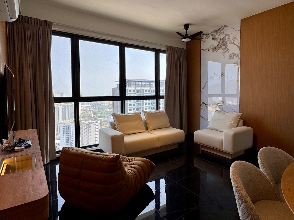 Chào mừng bạn đến với Mila, 3BR Suites by Urban Suites Hospitality. Nằm ở tầng 41, tầng cao nhất của Urban Suites Jelutong, Mila mang đến một kỳ nghỉ cao cấp với nội thất gỗ và màu be tinh xảo. Phòng suite cao cấp này có 2 giường King và 1 giường đơn, khu vực sinh hoạt rộng rãi, điều hòa không khí đầy đủ và tầm nhìn toàn cảnh thành phố. Lý tưởng cho các gia đình và chỗ ở theo nhóm.