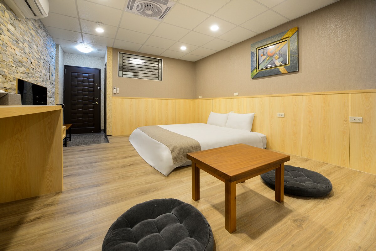 Nichiyō is located in Dayuan District, Taoyuan City, close to Taoyuan International Airport, making it ideal for transit or short stays. This room features one double bed, suitable for 1–2 guests. For 3–4 guests, a sofa bed will be provided and an additional guest fee applies. The airport is about 7–10 minutes by car, and A15 Dayuan MRT Station is nearby. Self check-in is available for flexible arrival.