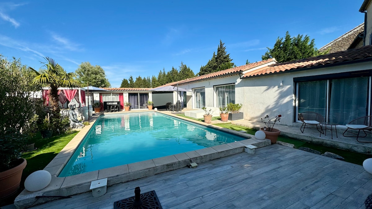 Mistral house, sang trọng, hồ bơi riêng cho một kỳ nghỉ khó quên ở Provence. Điều hòa không khí đầy đủ, ngủ 6, 3 phòng ngủ thoải mái, 2 phòng tắm, phòng bếp đầy đủ tiện nghi. Sân thượng, vườn 1500 m2, bãi đỗ xe, ở Maillane, cách Saint Rémy de Provence vài phút. Liên hệ với chúng tôi để biết các dịch vụ trợ giúp đặc biệt: nấu ăn, vệ sinh, trị liệu và mát-xa, các hoạt động, du ngoạn, hộp nếm rượu vang. Phòng tập thể dục chung Biệt thự Les Plaines en Provence có sẵn