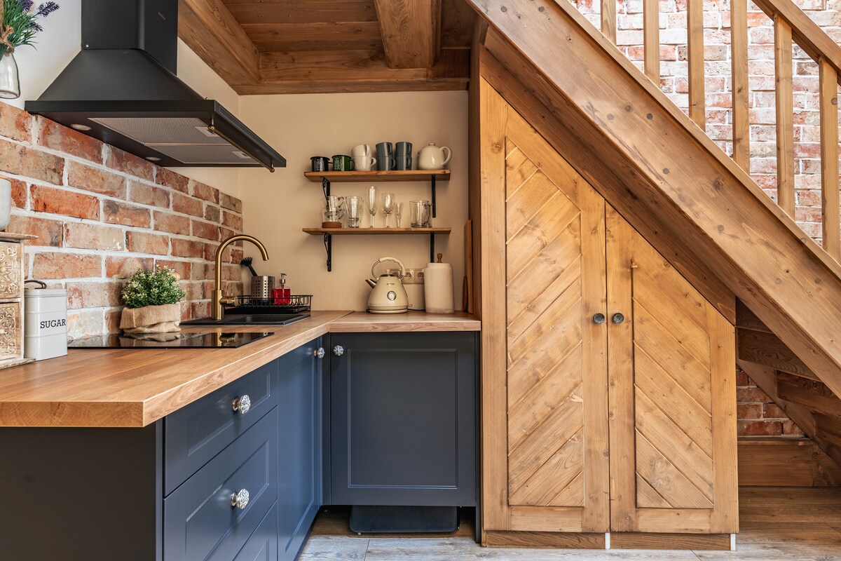 Patchwork Barn kết hợp quá khứ với hiện tại. Đây là một dự án hoàn toàn mới được hoàn thành trong các bức tường của nhà kho cũ. Tòa nhà hoàn toàn khép kín. Nó có lối vào riêng biệt và một khu vườn lớn. Mọi thứ đều ở tầng trệt.