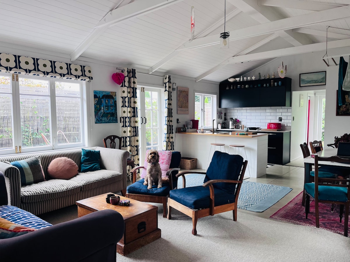 Relax in our sunny, fully renovated 109-year-old barn loft—rustic charm with modern comfort. Enjoy a comfy orthopaedic queen bed, spacious lounge with a sofa bed and heat pump, private bathroom, and a well-equipped kitchenette. Wake to birdsong, meet our friendly dog, cats, and hens. A peaceful “bit of country in the city” with off road parking. Close to supermarket, 7 mins from the CBD & express way to all parts of the city and Mount. Perfect for both business travellers and holiday makers.