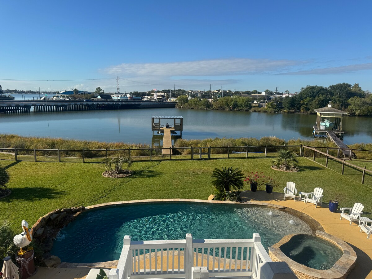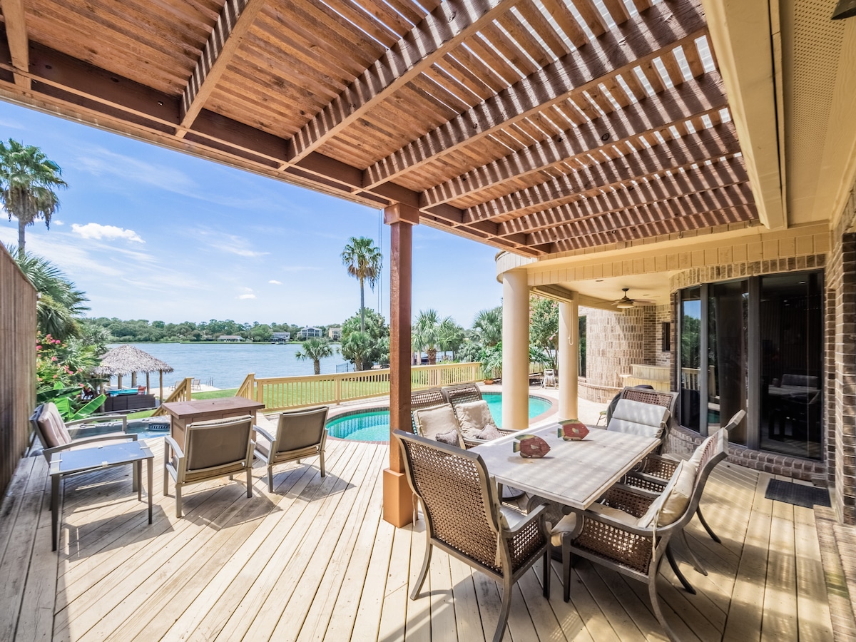 Tận hưởng tầm nhìn, chỗ ở ven hồ, tiện nghi, hoạt động dưới nước tại chỗ như hồ bơi, bồn tắm nước nóng, thuyền kayak và bến tàu với tất cả các hóa đơn và chi phí bảo trì đã được thanh toán. Đây là một ngôi nhà rộng 4300 sq ft với 4 phòng ngủ, 4,5 phòng tắm, văn phòng riêng và 2 khu vực giặt ủi. Đây là chỗ ở cho thuê theo tháng với thời gian ở tối thiểu 30 ngày. Gần Trung tâm vũ trụ Houston và Trung tâm vũ trụ Johnson của NASA 5 dặm, Kemah Boardwalk 4 dặm và bên bờ sông. Không dành cho tiệc tùng hoặc sự kiện. Nơi ở cho một gia đình theo các quy định hạn chế về chứng thư.
