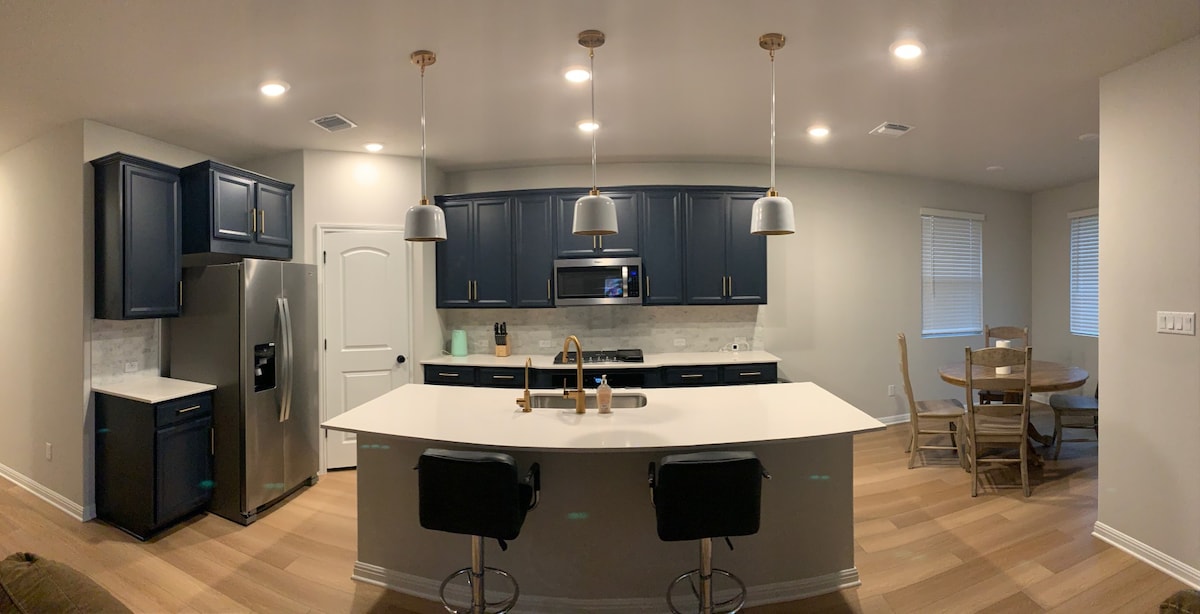 Thoát khỏi sự ồn ào và nạp năng lượng trong sự yên tĩnh tại "The Regina House". Nơi nghỉ dưỡng rộng rãi, thanh tĩnh được thiết kế cho cả công việc và niềm vui. Tận hưởng một mặt bằng mở liền mạch kết nối nhà bếp, khu vực ăn uống và sinh hoạt. Hiện đại, thoải mái và yên tĩnh, hoàn hảo để thư giãn. Tọa lạc tại vị trí thuận tiện, chỉ cách Samsung 2 dặm, 5 dặm đến Downtown Taylor, 11 dặm đến Round Rock Premium Outlets, 27 dặm đến Tesla Giga, 32 dặm đến Sân bay Austin & 11 dặm đến Dell Diamond & Kalahari. Kỳ nghỉ yên bình của bạn đang chờ bạn!