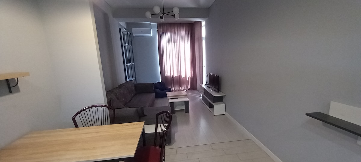 Căn hộ nằm ở quận Saburtalo, gần Cung thể thao, ga tàu điện ngầm Đại học Bách khoa, ở tầng 9, diện tích 60 m2, theo phong cách studio với 2 phòng ngủ và sân thượng rộng. Được trang bị mọi thứ bạn cần. Nếu muốn, tôi có thể sắp xếp các tour du lịch quanh Georgia, thành phố và dịch vụ đưa đón