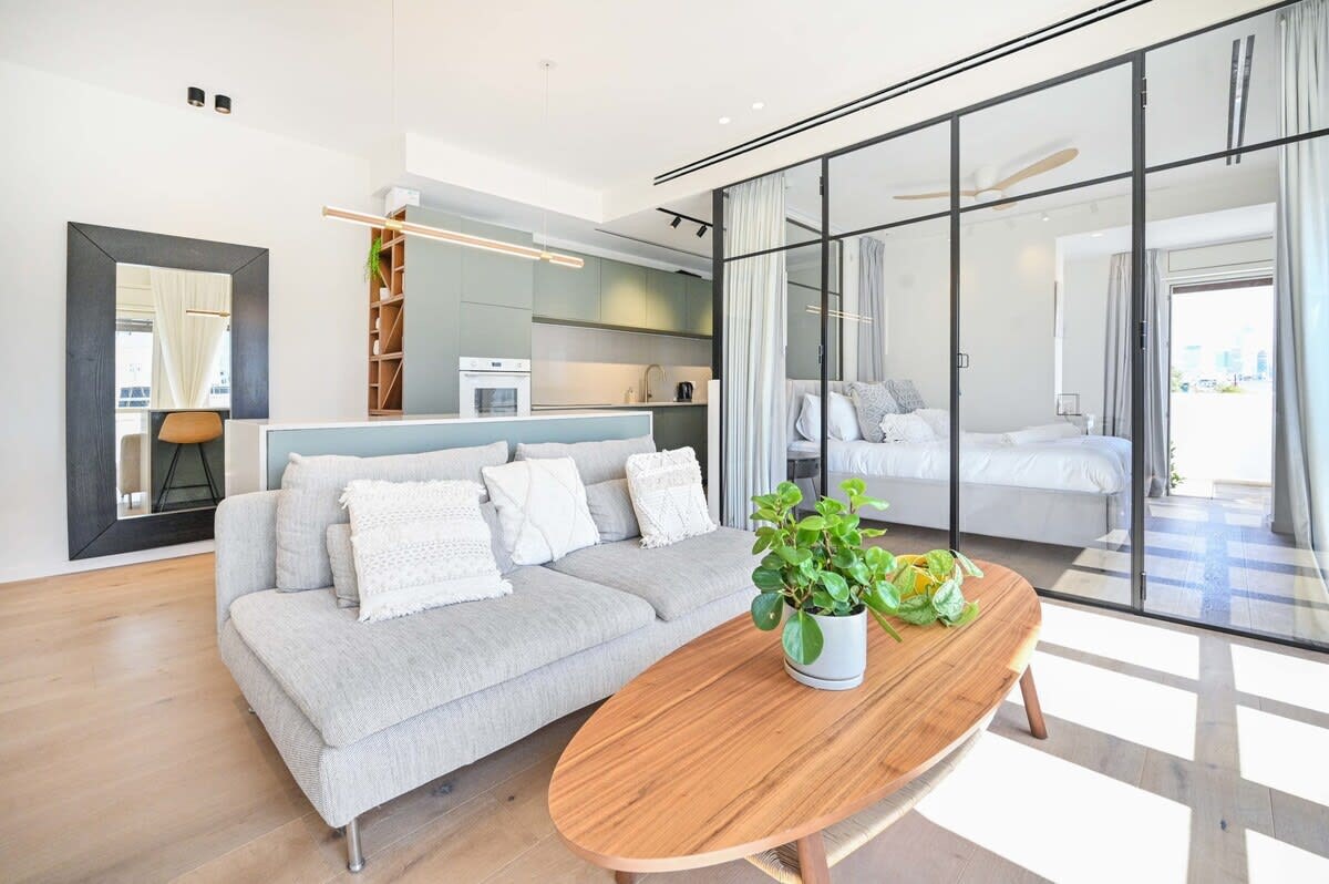 Căn hộ Tel Aviv 3 phòng ngủ hiện đại bên bãi biển và cảng