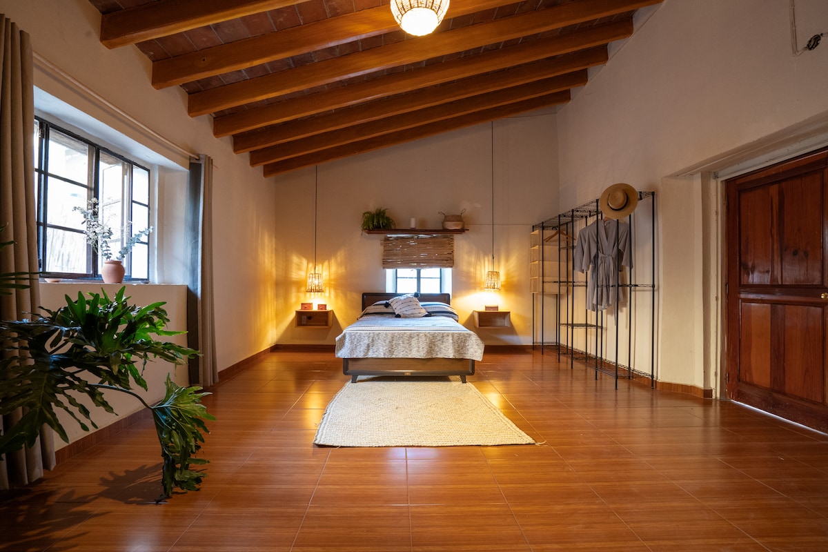 Hãy đến và tận hưởng thời gian lưu trú tuyệt đẹp này với tầm nhìn đặc quyền ra khu bảo tồn sinh thái, nơi bạn có thể quan sát thỏ, cáo, ngựa, diều hâu và các động vật khác. chỉ cách một trong những địa điểm thiên đường nhất ở Morelos vài phút: Công viên tự nhiên "Las Estacas", cũng như ngôi làng kỳ diệu Tlaltizapán de Zapata. Nó có 1 giường cỡ queen và nệm futon gia đình thoải mái. Nó có bếp nhỏ với lò vi sóng, nồi chiên không khí và tủ lạnh nhỏ. Nó có phòng tắm đầy đủ, TV và Internet.