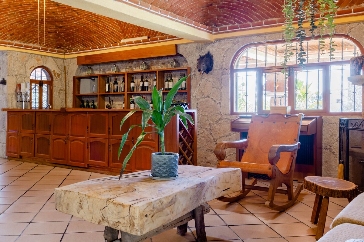 Sống một trong những trải nghiệm tinh tế nhất về sự sang trọng, thoải mái và yên tĩnh mà Tequisquiapan và khu vực rượu vang Queretaro có thể mang lại. Hãy đến như một cặp đôi để tận hưởng một không gian bao quanh là thiên nhiên, những khu vườn rộng lớn và các tiện nghi của câu lạc bộ La Carolina: bồn tắm hơi có mái che và bể bơi nước nóng bàn bi-a, bàn bi-a phòng chiếu. nhà kính yacuzzi với cây nhiệt đới. * Vị trí thực SỰ: ngoại ô Tequisquiapan, cách 100 m. Hacienda 3 người. Cách đó 25 phút.