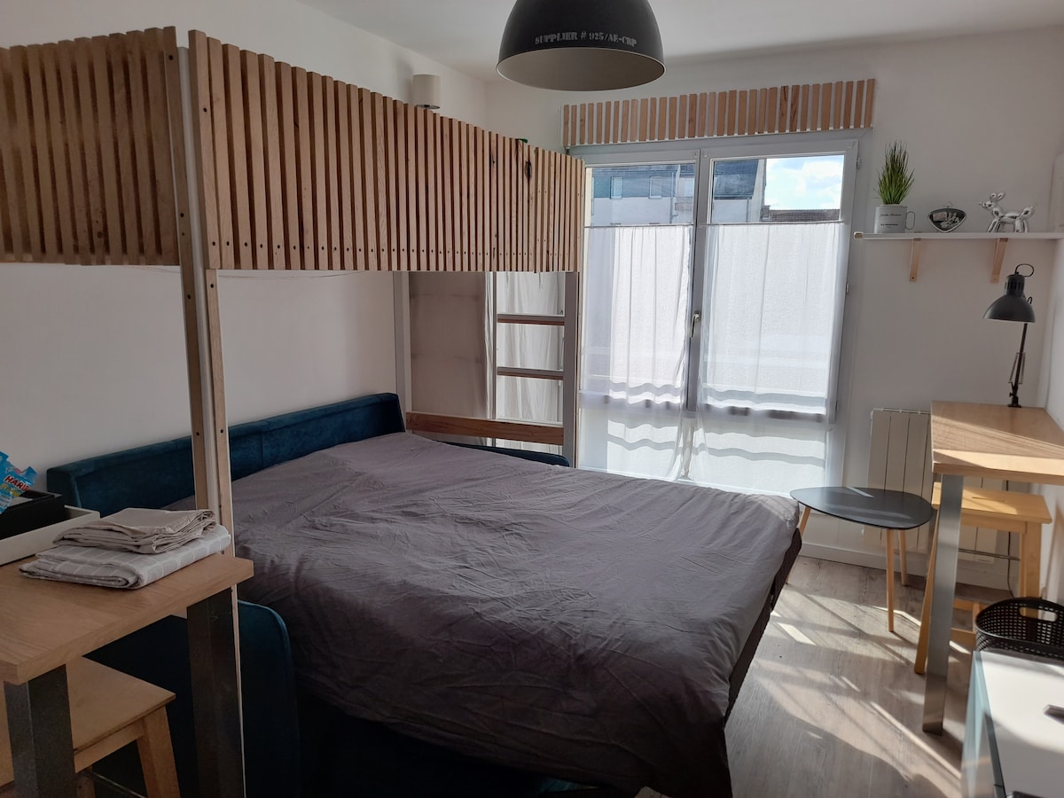 Được trang bị nội thất trong một phần phụ của ngôi nhà của chúng tôi, studio/căn hộ thông tầng nhỏ rộng 14 m2 của chúng tôi đang chờ bạn cho chuyến du lịch hoặc chuyến công tác của mình. Nó bao gồm, ở tầng trệt, nhà bếp và nhà vệ sinh; trên lầu, phòng ngủ và phòng tắm (lưu ý: cầu thang dốc một chút). Nằm gần tuyến đường Nantes-Paris, Terra Botanica, phương tiện giao thông công cộng và các cửa hàng. Chúng tôi đảm bảo có 24 - 48 giờ không có người ở giữa hai khách để tôn trọng tốt nhất các điều kiện vệ sinh. Nói tiếng Anh/ Se habla español.