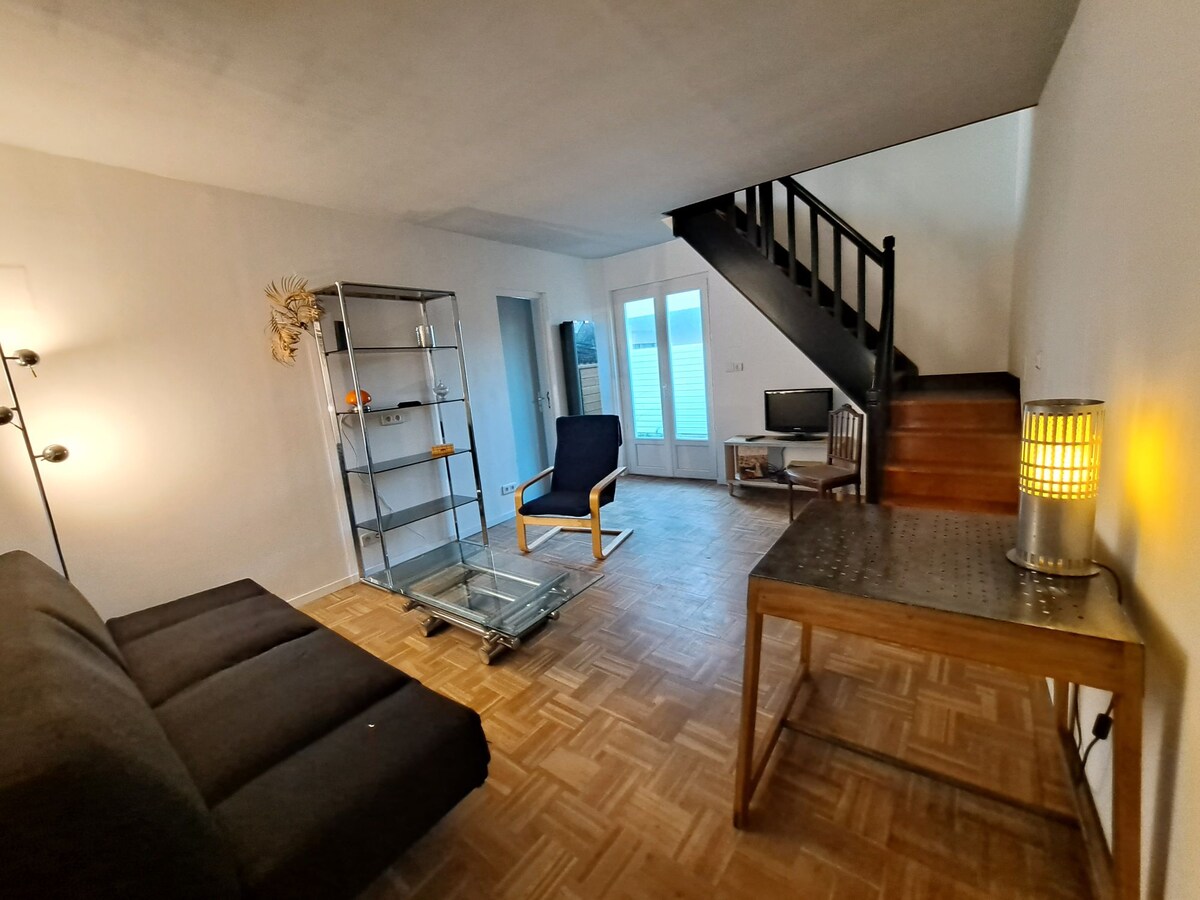 Chào mừng bạn trở về nhà Nếu bạn thích những gì nhỏ bé và ấm cúng thì nó dành cho bạn! Nằm trong một khu vườn riêng ở trung tâm khu dân cư có nhiều cây cối, bạn sẽ rất yên tĩnh. Căn hộ nhỏ có vị trí hoàn hảo chỉ cách trung tâm thành phố Angers 10 phút đi xe hơi. Trong khoảng cách đi bộ: Xe buýt = 5 phút. Xe điện = 15 phút. Tiệm bánh/hiệu thuốc/thuốc lá = 5 phút Bếp đầy đủ tiện nghi với lò nướng, máy nướng bánh mì, tủ lạnh, bếp điện. Không có lò vi sóng. Phòng tắm có vòi hoa sen, bồn rửa và BỆ SỬA KHÔ!