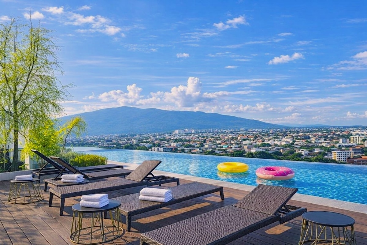 Astra sky river3 giường 5 người sang trọng, hồ bơi vô cực dài nhất và đẹp nhất Thái Lan + núi Doi Suthep, hoàng hôn đẹp nhất + văn phòng chia sẻ + gần thành cổ
