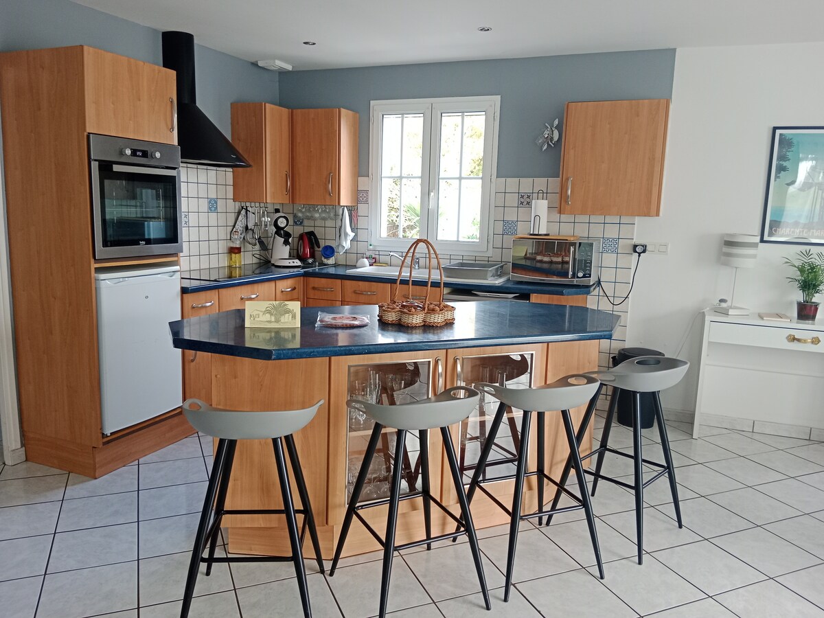 Ngôi nhà Charentaise được cải tạo hoàn toàn nằm trong một ngôi làng yên bình cách thị trấn Cozes 5 km, nơi bạn có thể tìm thấy tất cả các tiện nghi. Nhà bếp đầy đủ tiện nghi, 3 phòng ngủ bao gồm một ở tầng trệt và hai phòng tắm (một ở mỗi tầng) Sân ngoài trời với sân thượng, bàn và tiệc nướng có sẵn. 20 phút từ các bãi biển đầu tiên của Royannais cũng như cửa sông Gironde, nơi những chuyến đi bộ tuyệt đẹp đang chờ đón bạn.