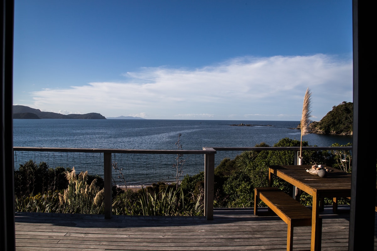 Tỉnh dậy với tầm nhìn bao quát ra đại dương, nhìn ra Vịnh Mercury và các hòn đảo phía xa. Ngôi nhà bên bờ biển sáng sủa, thoáng mát và đầy ánh sáng này được thiết kế để thư giãn, với những sân hiên đầy nắng đón gió biển và cảnh hoàng hôn tuyệt đẹp. Chỉ cần đi bộ một quãng ngắn là bạn sẽ đến được bãi cát trắng của Bãi biển Cooks, hoặc lên xe lái một quãng ngắn đến Cathedral Cove và Bãi biển Hot Water – hai trong số những địa điểm tiêu biểu nhất của Coromandel.
