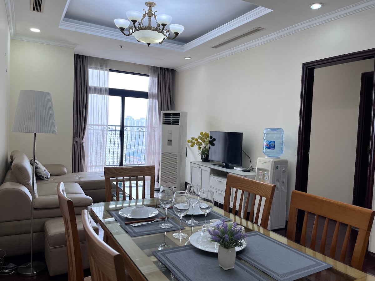 Căn Hộ cao cấp được thiết kế với phong cách hiện đại, tiện nghi tại khu vực trung tâm của Hà Nội, nơi bạn có thể dễ dàng mua sắm tại TT Vincom hoành tráng, ăn uống tại các nhà hàng, quán ăn, cafe cực kì ngon chỉ trong vòng 5-10ph đi bộ. Chúng tôi luôn giữ sạch sẽ và thơm tho tại căn hộ cao cấp của mình. +Ban công với view cao. Bạn có thể tận hưởng kỳ nghĩ của mình một cách lãng mạn nhất cùng với những bộ phim được chiếu trên Tivi màn hình rộng và được cài đặt sẵn Netflix