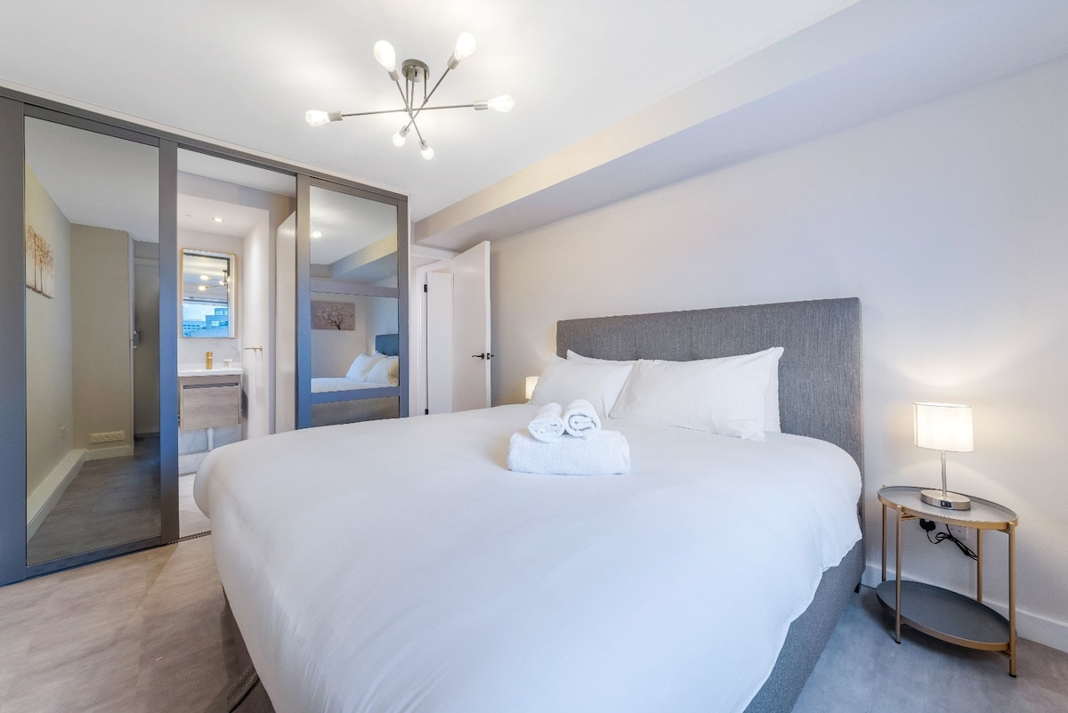 Căn hộ đầy phong cách này có ban công riêng chỉ cách ga Farringdon vài bước chân (các chuyến tàu trực tiếp từ các sân bay Heathrow, Gatwick và Luton). Nó nằm trong một khu phát triển hiện đại, yên tĩnh với thang máy. Căn hộ có giường cỡ king (giường cỡ queen Mỹ) của Vương quốc Anh, phòng tắm vòi sen hiện đại, bếp đầy đủ tiện nghi với máy rửa chén, máy pha cà phê, lò vi sóng và tủ lạnh, cũng như máy giặt - máy sấy. TV cung cấp quyền truy cập vào các kênh Netflix và Freeview, trong số những kênh khác.