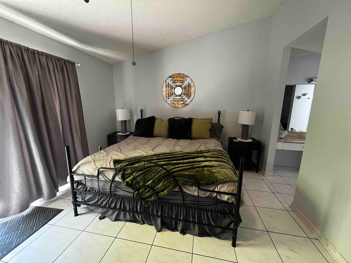 Căn hộ riêng - 1 phòng ngủ với giường cỡ king, 1 phòng tắm kích thước đầy đủ, khu vực sinh hoạt và ăn uống riêng biệt. Nhà bếp đầy đủ tiện nghi. Bãi đỗ xe miễn phí, khung cảnh ốc đảo đẹp với hồ bơi nước mặn, bồn tắm nước nóng và sân hiên. Gazebo với hố lửa, Bar-be-cue, 2 TV, Wifi miễn phí. Đây KHÔNG PHẢI là địa điểm tiệc tùng mà là nơi thư giãn trong hồ bơi, bồn tắm nước nóng hoặc bữa tối thư giãn tại nhà sau khi đến thăm các địa điểm ở Miami. Nằm trong một khu phố yên tĩnh, cách khu mua sắm và nhà hàng 2 dặm. Đây là địa điểm nghỉ dưỡng của bạn!