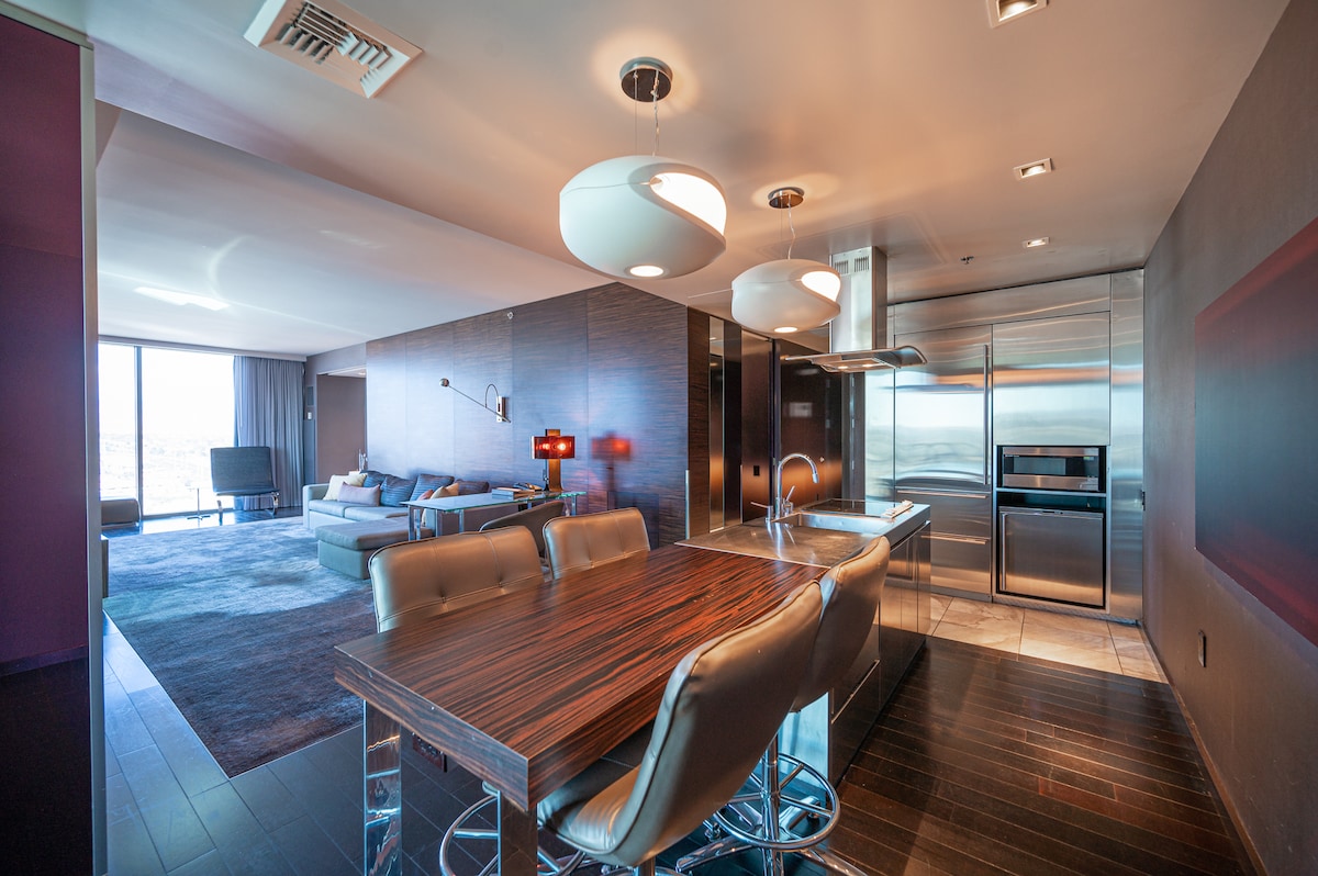 *Căn hộ Penthouse 2 giường 2 phòng tắm đẹp tại tháp Signature MGM *Quang cảnh dải và hình cầu tuyệt đẹp trên ban công riêng *Được sử dụng TẤT CẢ CÁC tiện nghi của MGM – Không tính phí nghỉ dưỡng (tiết kiệm $ 84/nt) *5 phút đi bộ đến Strip - Di chuyển lối đi trong nhà *Một phòng ngủ hai phòng tắm Penthouse + PH Studio liền kề (tổ hợp 2 giường 3 phòng tắm) *Hai giường king +2 giường Queen kéo ra *Sử dụng hồ bơi, phòng chờ sôi động và cơ sở thể dục * Bộ đồ giường sang trọng * Có bảo vệ 24/7 và bãi đỗ xe có người phục vụ miễn phí *Topgolf Next Door *Starbucks ở Tháp 1