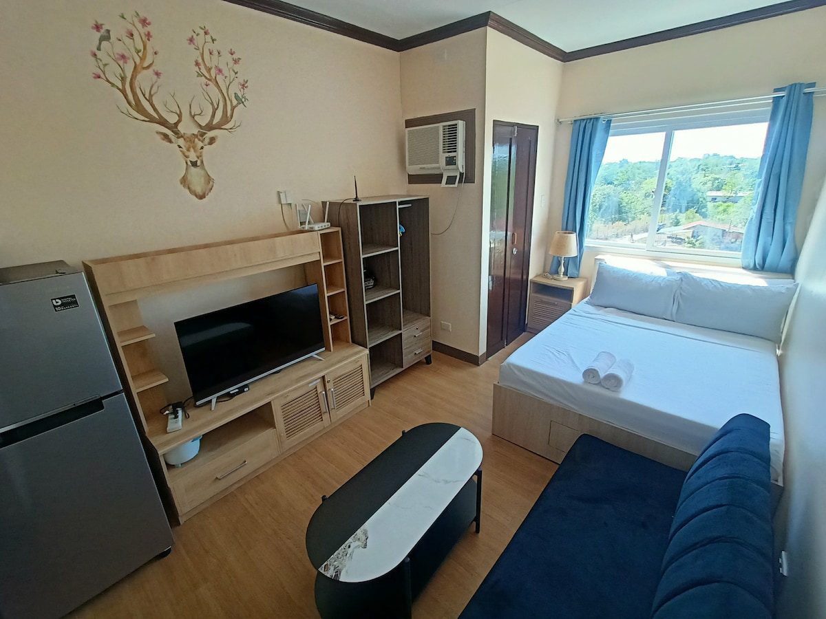 Một căn hộ loại Studio ấm cúng, đầy đủ tiện nghi nằm ở Tipolo, Thành phố Mandaue, Cebu gần các trung tâm thương mại, trường đại học, cơ sở ẩm thực và bệnh viện. Chỉ mất một chuyến xe jeepney là đến Ayala Mall, SM City Cebu, Parkmall và Pacific Mall. Lối vào cổng nằm gần Xin chào với lối vào PUJ/PUV 24/7. Nó có giường cỡ Queen và được phép nấu ăn và sử dụng tất cả các dụng cụ nhà bếp và ăn uống được cung cấp. Nó cũng có kết nối internet nhanh và TV thông minh với Netflix. An toàn với nhân viên bảo vệ và CCTV 24 giờ