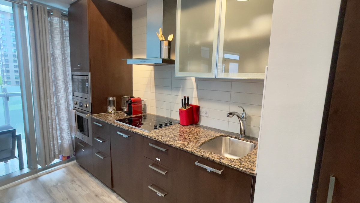 Toàn bộ căn hộ cao cấp đầy phong cách và hiện đại ngay trung tâm DT Toronto! ĐI BỘ đến các điểm tham quan chính của Toronto: Tháp → CN/ Thủy cung /Trung tâm Rogers (7 phút) → Scotiabank Arena (2 phút) → Union Station (2 phút) → Lake Ontario Waterfront (3 phút) → Tiếp cận trực tiếp CON ĐƯỜNG NGẦM Điểm nổi bật: Ra vào tòa nhà→ an toàn với nhân viên hỗ trợ 24/7 Ban công→ rộng rãi có bộ sân hiên → Lò sưởi điện → Máy giặt + máy sấy với nước giặt →CHỖ Ở THEO THÁNG: Sử dụng trung tâm thể dục, hồ bơi, phòng xông hơi khô!