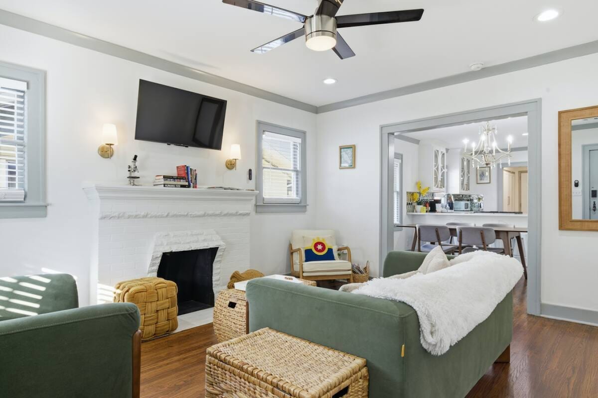 Một vài ngôi nhà từ sân bóng dưa chua của Midtown, bạn sẽ tìm thấy Ivy Cottage. Sự quyến rũ và cá tính là điểm nhấn của chỗ ở đáng yêu này. Ghế sofa lớn là một nơi hoàn hảo để thư giãn và xem chương trình yêu thích của bạn trên TV thông minh. Hoặc phục vụ bữa tối trong phòng ăn với cửa kiểu Pháp mở ra sân. Ở phía sau, bạn sẽ tìm thấy bồn tắm nước nóng, TV thông minh, ghế sofa, bảng phi tiêu, tủ lạnh rượu vang, cornhole, v.v. Những chiếc giường sang trọng đang chờ đón bạn khi bạn đã sẵn sàng để gọi đó là một đêm. *Lò sưởi không hoạt động.