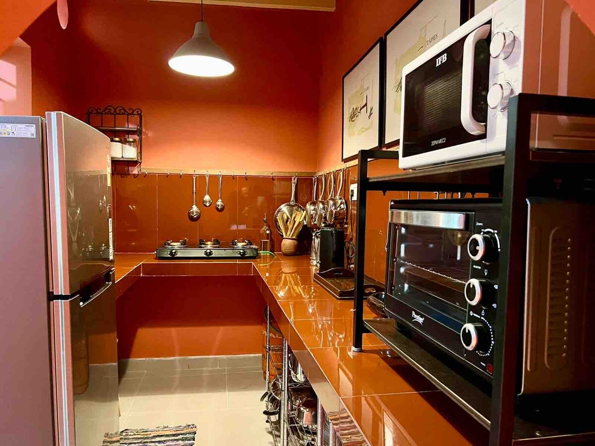 Your home away from home in Auroville has been tastefully decorated to a Chettinad theme. Every corner of our home is Instagramworthy with colourful interiors, kolam art, antique decor and more. The 1BHK can comfortably accommodate up to 4 persons with a swing bed and sofa bed in the living room. hile there are plenty of restaurants nearby, our kitchen has been thoughtfully equipped for all your needs - be it to make a quick omelette or a full Indian meal. So sit back, relax and sip your coffee.