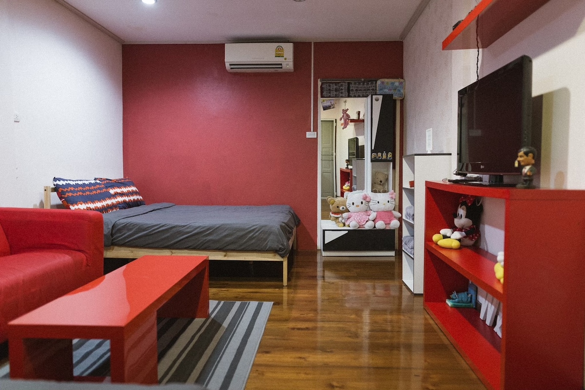 Phòng theo phong cách gác xép đơn giản. Nó phù hợp cho 2 tối đa 3 người có giường phụ. Bạn có thể tận hưởng toàn bộ căn phòng. Căn phòng này nằm ở tầng 2 của tòa nhà trên Rama4, Pathumwan, dễ dàng đến đường Banthat Thong ( nhiều món ăn đường phố) trong vài phút đi bộ. Siam Square, MBK và China Town cũng nằm trong khoảng cách đi bộ. Công viên Trung tâm Dusit và công viên Lumpini chỉ cách Mrt 2 điểm dừng. Bạn cũng có thể tận hưởng bầu không khí thư giãn tại Công viên Centenary trong một chuyến đi bộ rất ngắn.