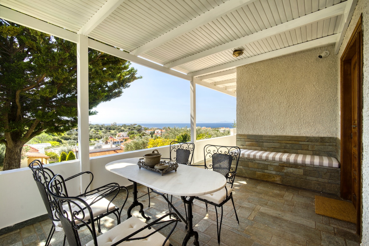 It's an independent and comfortable apartment, 60 m2 with direct access to a beautiful garden and a great view of the sea from the living room and the bedroom. Located in a very quiet area of Artemida (Athens suburb) 1,8 km from the center of the town, 15 minutes drive from the airport and 20 minutes from Rafina port. Our guests can enjoy moments of relaxation between flights or book a full holiday away from the noise of the center but close enough (1,8km) if you want a restaurant or a pub.