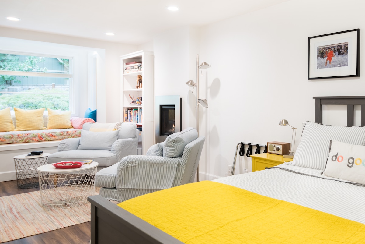 Kiến trúc sư thiết kế và sửa sang lại phòng dành cho khách tại ngã ba Fremont & Wallingford. Phòng được thiết kế và trang bị nội thất phù hợp với sự thoải mái của bạn. Không gian tràn ngập ánh sáng phù hợp với những thứ xa xỉ như sàn nhà được sưởi ấm, ga trải giường cotton chất lượng cao, vòi sen và nệm xốp bộ nhớ với các tiện nghi cần thiết để sử dụng không tiếp xúc, chỗ đỗ xe miễn phí trên đường phố và WiFi lưới sợi tốc độ cao.