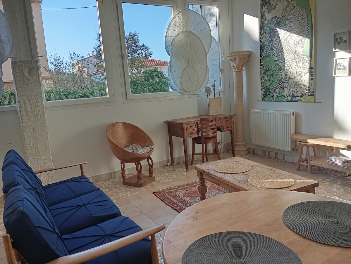 Studio khá độc lập rộng 18 m2 cho 2 người (phù hợp với xe lăn), có giường sofa có nệm có chất lượng rất tốt. Nó mở ra một khoảng sân dễ chịu với bếp nướng điện. SAINT-FELIU-DUps là một ngôi làng nhỏ yên bình gần Perpignan giữa biển và núi, gần các địa điểm tham quan như Orgues d 'Illes và các điểm đi bộ đường dài tuyệt đẹp. Cách bãi biển Canet và Tây Ban Nha 30 phút, cách núi 1 giờ. Giường và khăn tắm được cung cấp.