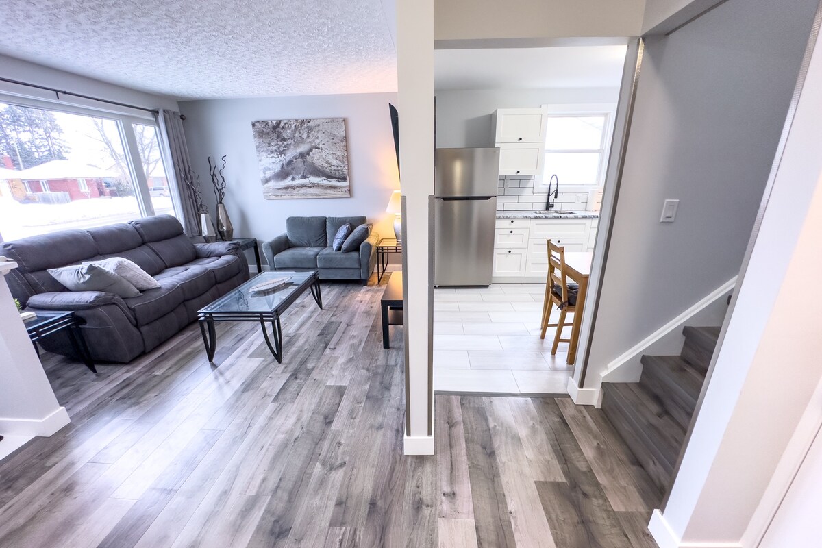 Ấm cúng và được trang trí đẹp mắt với sự tinh tế của địa phương. Nơi ẩn náu của chúng tôi nằm cách Vịnh & Quận Algoma thời thượng vài bước chân, cách trung tâm thành phố vài phút. Mua sắm, quán bar và nhà hàng cách đó một quãng đi bộ, nhưng bạn có thể không muốn rời đi . Chỗ ở 20 năm tuổi mới được cải tạo này bao gồm giường mới thoải mái, 2 Phòng tắm đầy đủ, Bếp được trang bị đầy đủ tiện nghi, giặt ủi tại chỗ, gara, boong, phòng xông hơi khô và lò sưởi ga. Hoàn hảo cho công việc, kỳ nghỉ hoặc thăm bạn bè và gia đình. Bạn cần điều gì đó? Chủ nhà luôn sẵn sàng hỗ trợ bạn.