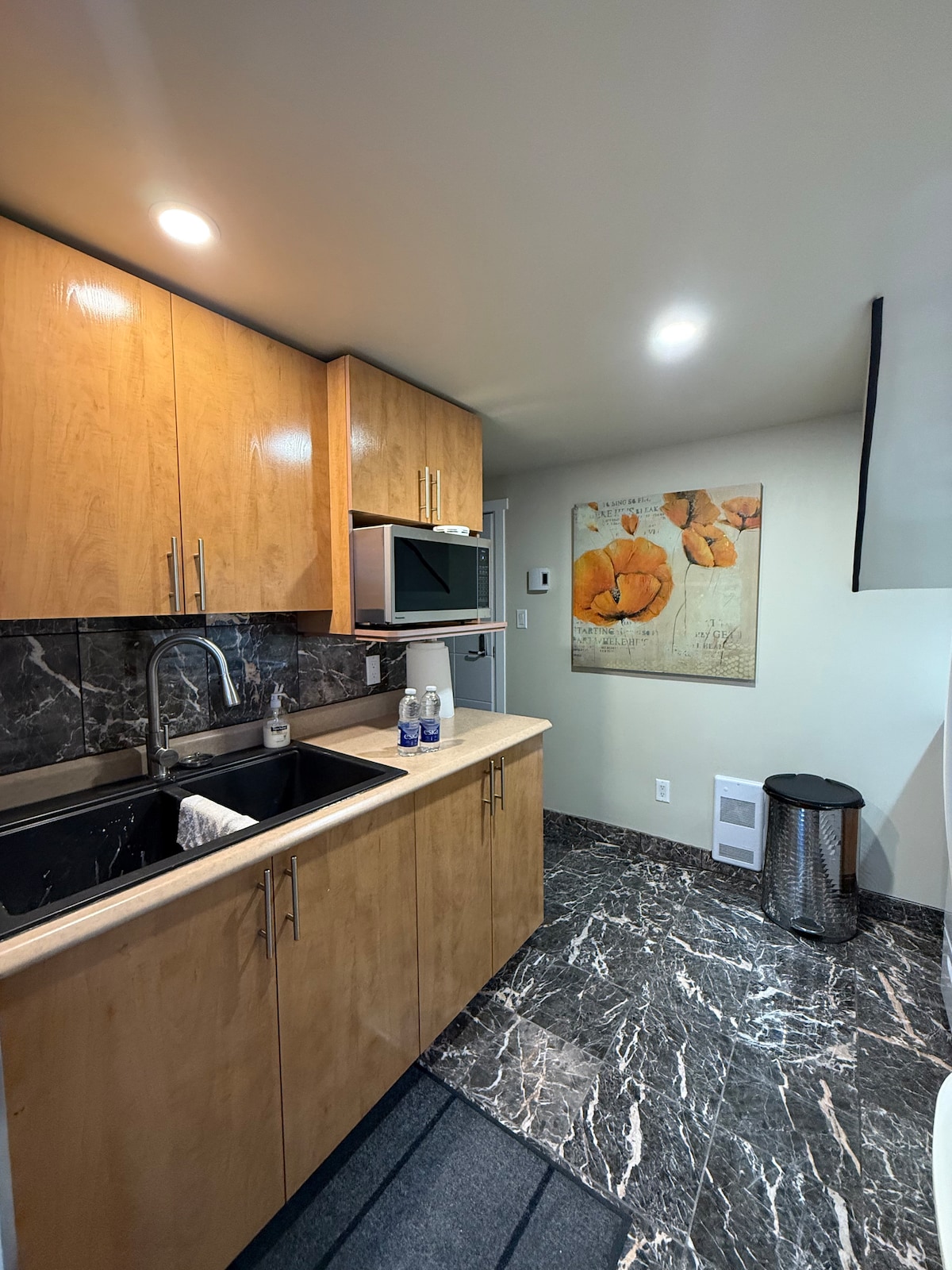NON FUMEUR Recharge auto NIVEAU 2 ($ à discuter). Appartement privé et entrée privée. Parking sur place. Cuisine complète, salle de bain douche. Lit queen avec couette-plume de qualité. Lit avec housse anti-acariens. Buanderie dans le logement Animaux permis (avec approbation). Netflix, Disney et Prime inclus. Internet haute vitesse. Caméras extérieures, détecteur de fumée et de monoxide de carbone, extincteur, serrure à code unique, diverses issues de secours, éclairage extérieur, etc.