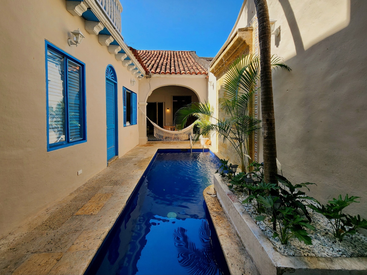 Magnificent house from the 18th century recently restored by one of the most renowned designers in Colombia. The 4 story villa with 4200 sqft includes 5 bedrooms, 2 living rooms, a 360° viewpoint, and one of the best rooftop swimming pools in the historic center. Enjoys a prime location situated 2 blocks away from Pegasus Marina, the Media Luna Plaza, the Convention Center, and the New Four Seasons Hotel at Getsemani. Includes: Daily American breakfast, Maid, Chef and a Doorman (6 pm - 6 am).