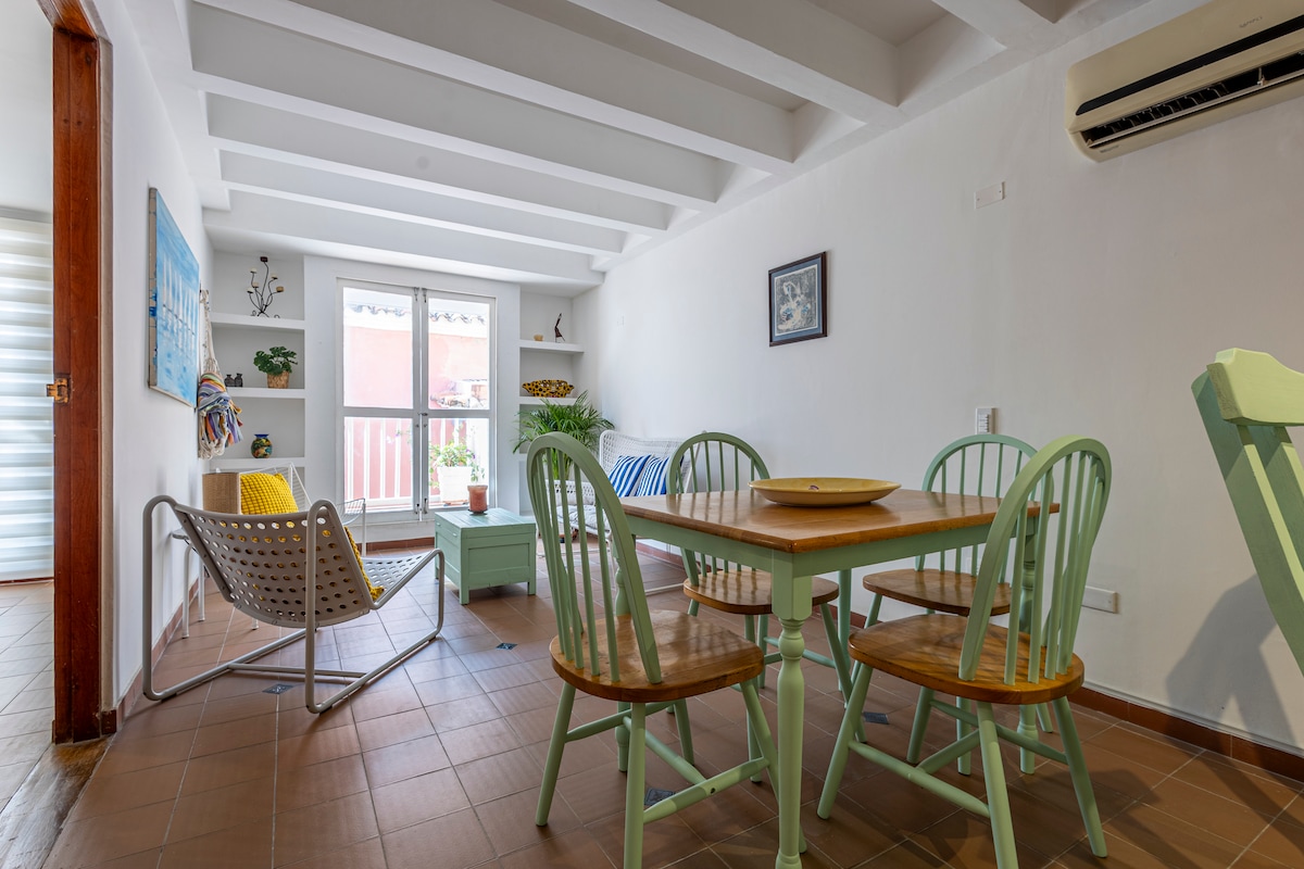 Khám phá sự quyến rũ của Cartagena từ căn hộ thanh lịch của chúng tôi ngay trung tâm Trung tâm Lịch sử! Hoàn hảo cho gia đình hoặc nhóm bạn bè, căn hộ ấm cúng này mang đến sự kết hợp lý tưởng giữa sự thoải mái, phong cách và vị trí tuyệt vời. Nằm trước những bức tường mang tính biểu tượng của thành phố, bạn sẽ tận hưởng trải nghiệm chân thực và thoải mái tại một trong những khu vực sôi động nhất của Cartagena.