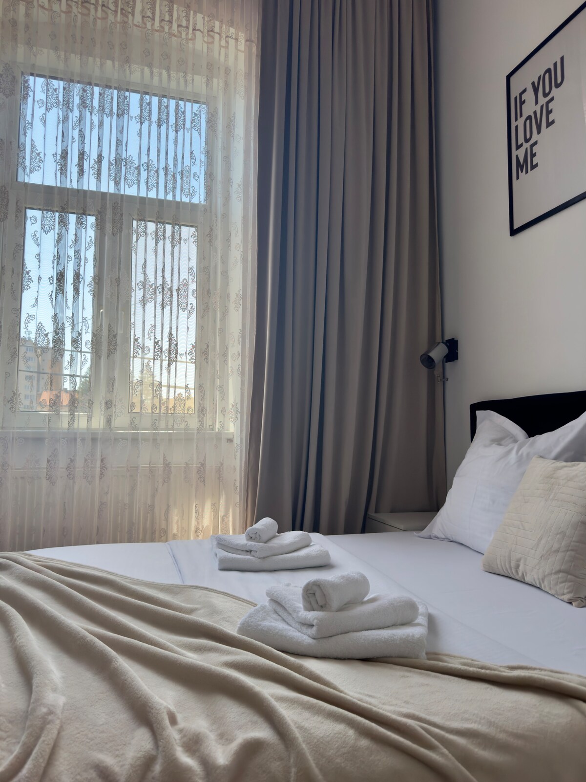 Imagine stepping into a welcoming apartment on a quiet pedestrian lane, just a 7-minute walk from the city center. Here, you'll find a comfortable space where every detail is designed to make you feel at home. Everything the city has to offer is just minutes away: restaurants, shops, and cultural attractions waiting to be explored. You'll feel the pulse of the city without giving up the privacy and relaxation you need.